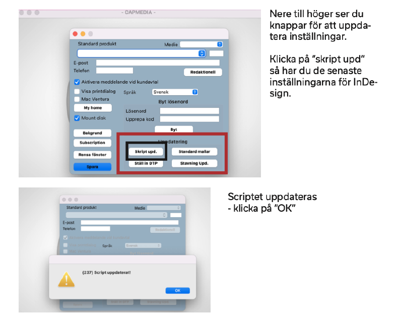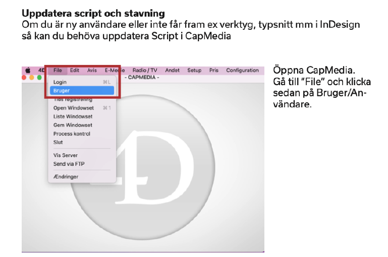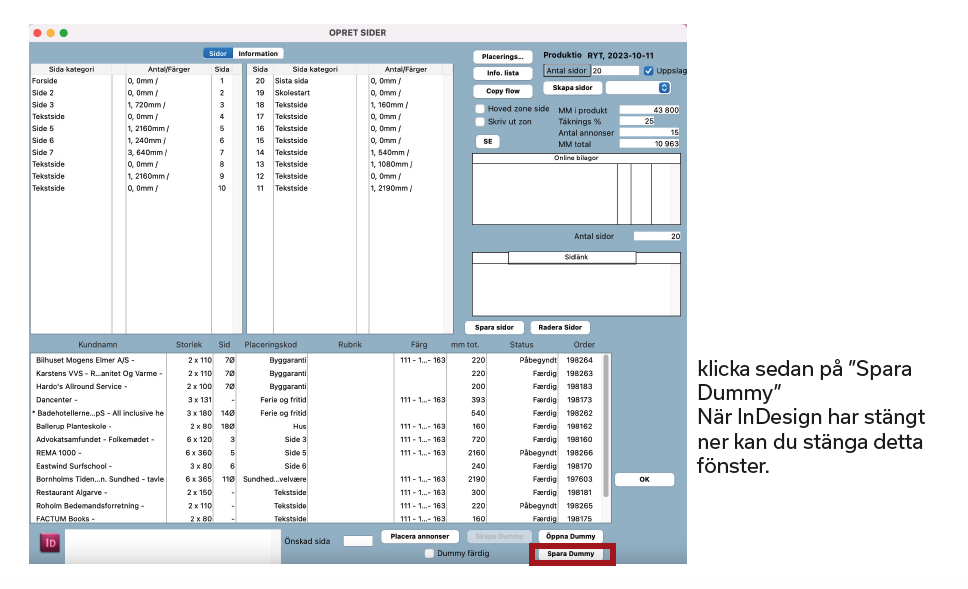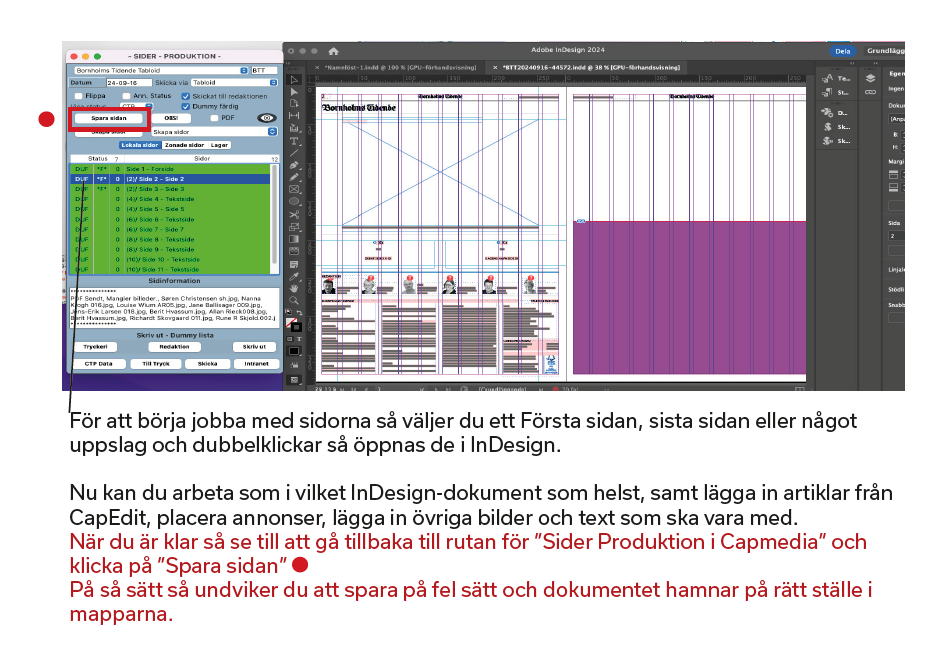 OBS! se till att alltid spara dummyn i CapMedias fönster och INTE direkt i InDesign.