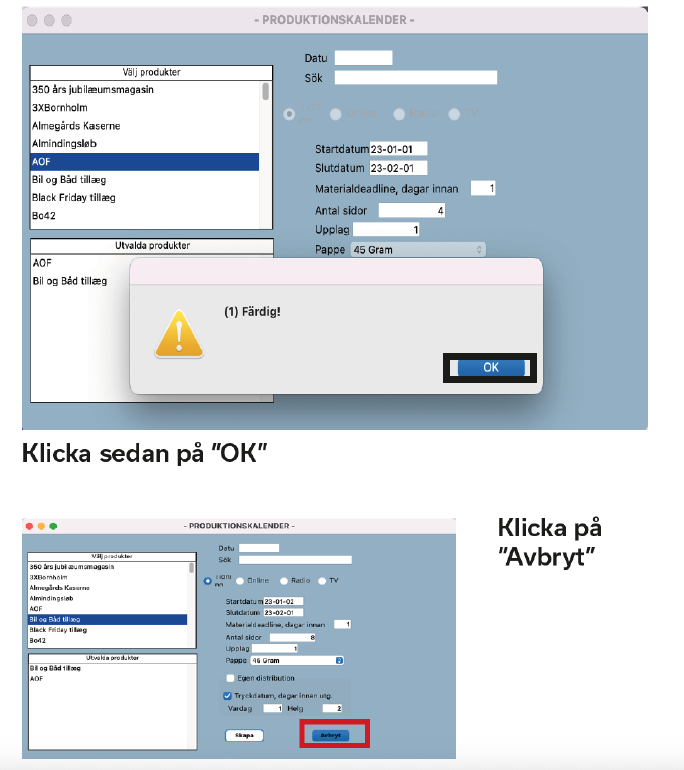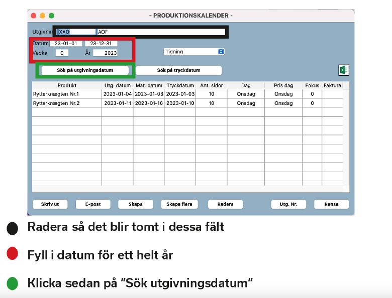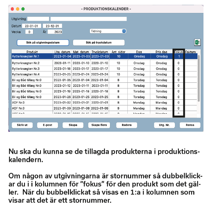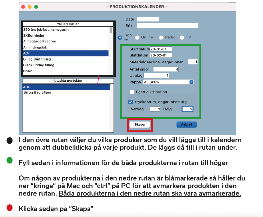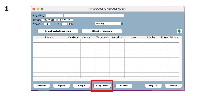 Klicka sedan på "skapa flera" Här kan du välja vilken eller vilka utgåvor som du vill lägga in utgivningsdagar för. OBS! Om du väljer fler utgåvor samtidigt så behöver utgåvorna ha samma utgivningsdatum.