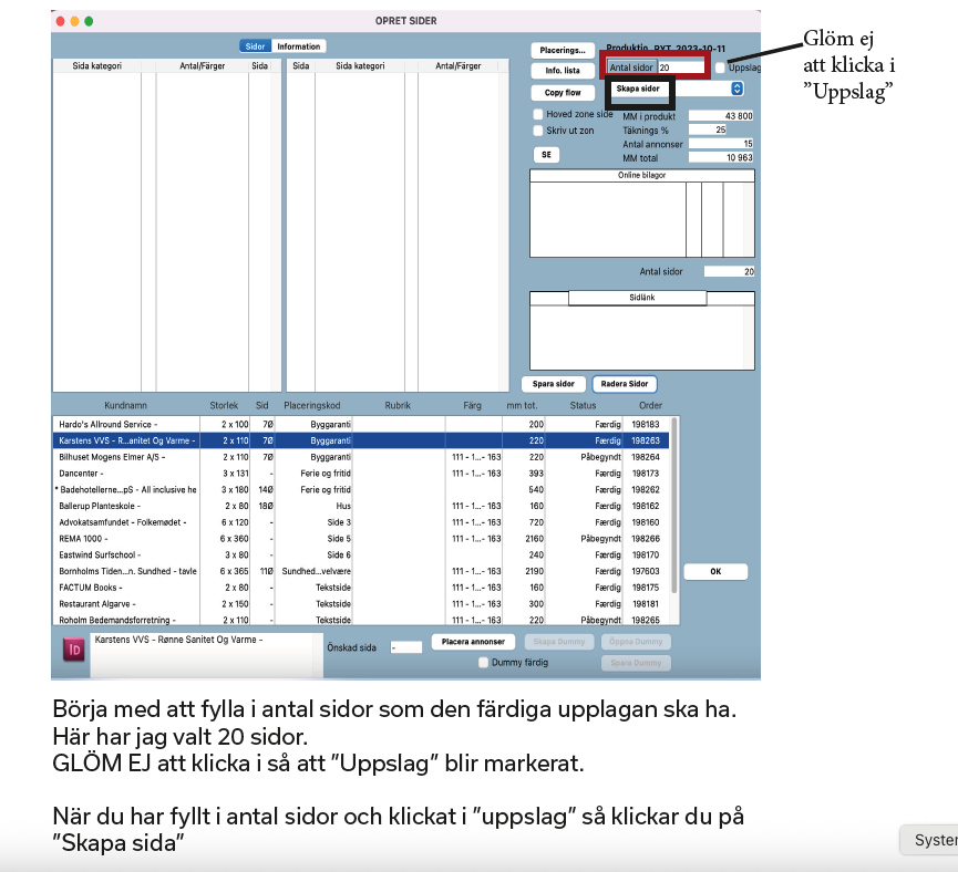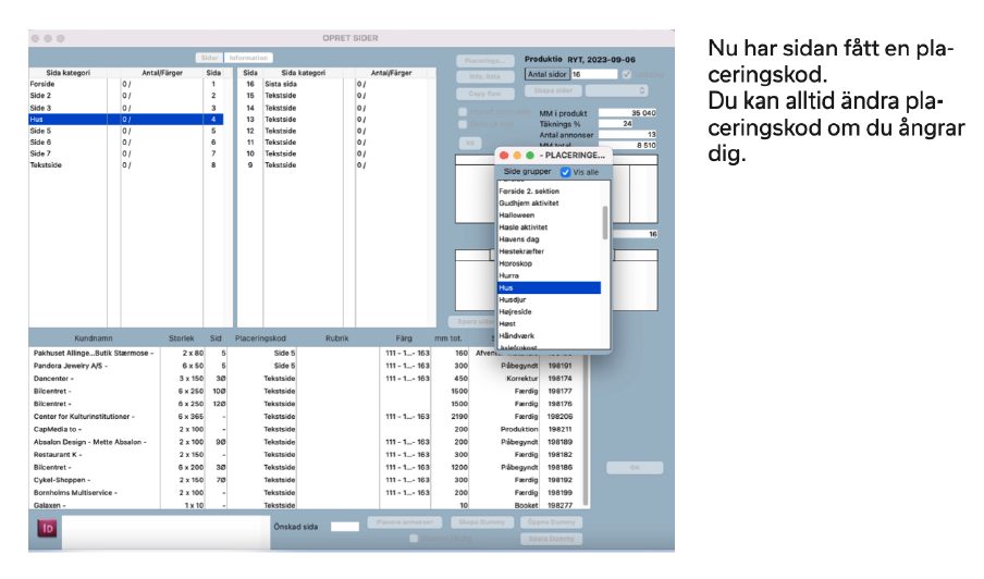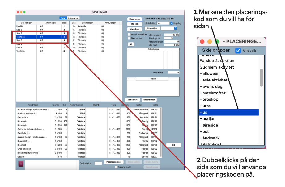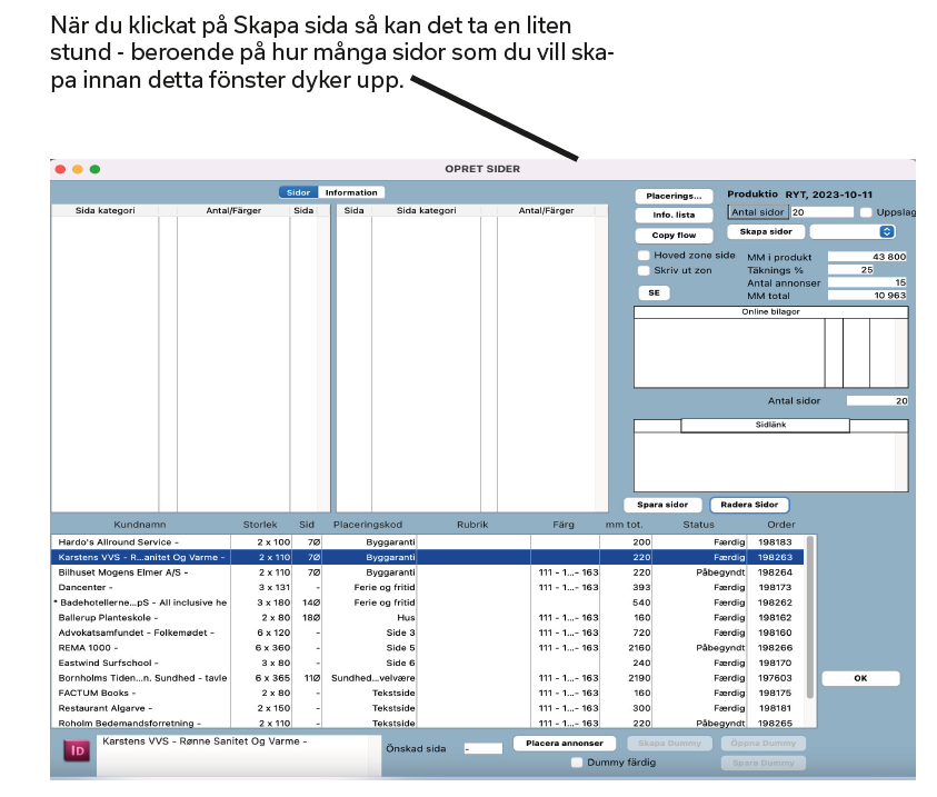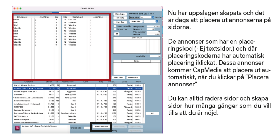 Om du redan har skapat dummy kan du alltid gå tillbaka och lägga in placeringskoder och sedan klicka på "skapa sidor" igen, då uppdateras dummyn med placeringskoderna för sidorna.