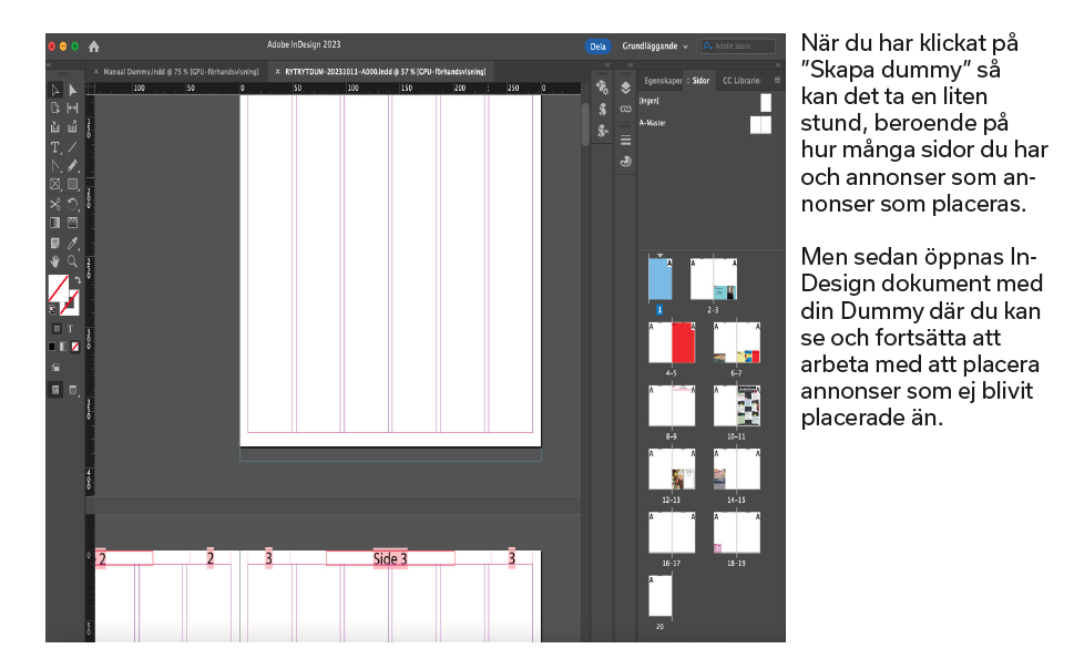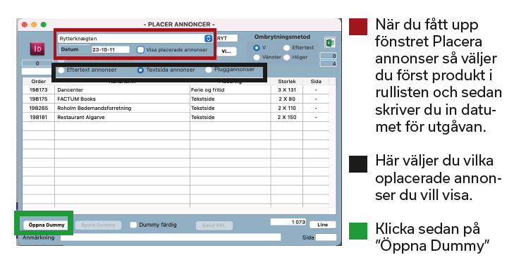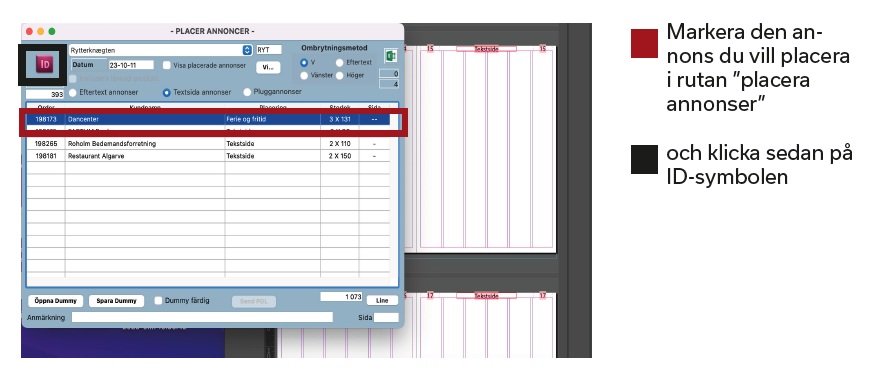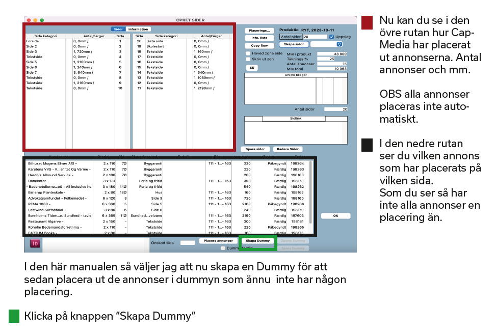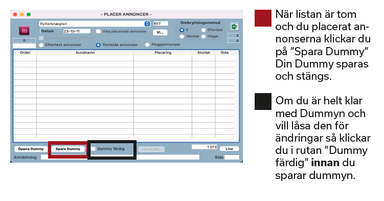 Ibland kan det komma in annonser efter att du har gjort en dummy. Då behöver du placera dessa manuellt.